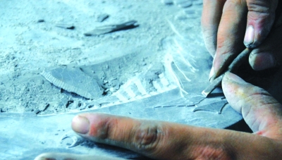 Cao’s father was a plate-making worker in a printing house. Under his influence, as a child Cao Jieming became fond of painting, and often drew pictures at home. “Because of the family’s economic plight at that time, we didn’t have toys or domestic appliances like a radio. We even had to use kerosene lamps at night. So drawing became my main enjoyment. One of my neighbors was an artist. During the day I would watch him paint, and at night I practiced drawing,” Cao recalled. “My later rapid progress could be partly attributed to this early training.” As an apprentice inkslab maker, Cao started with the elementary work of carving lines. His drawing skills, thanks to his love of art since childhood, soon caught the attention of Wang Lüsen, a master of the inkslab making craft.