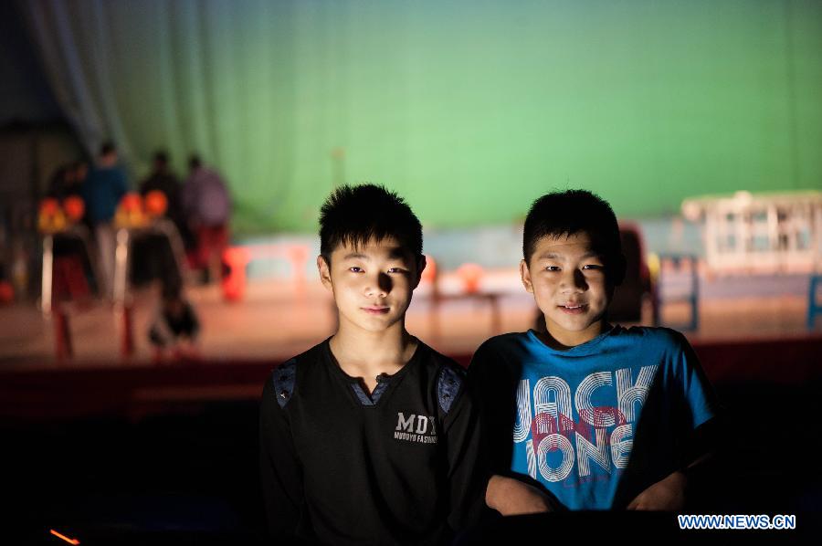 Learner Luo Junlong and Zhou Yili rest during an intermission of the training in Chongqing, southwest China's Municipality, Jan. 15, 2014. (Xinhua/Liu Chan)