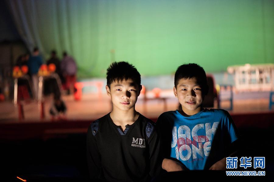 Photo taken on Jan. 15, 2014 shows 13-year-old Luo Junlong and 14 year-old Zhou Yili posing for photo together during the break time. (Xinhua/ Liu Chan) |