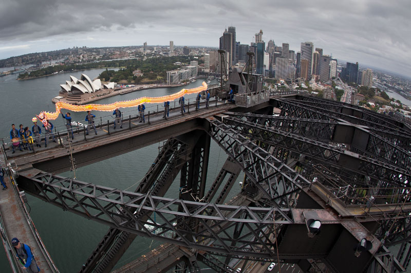 Chinese Dragon dances to the top of Sydney Harbour Bridge