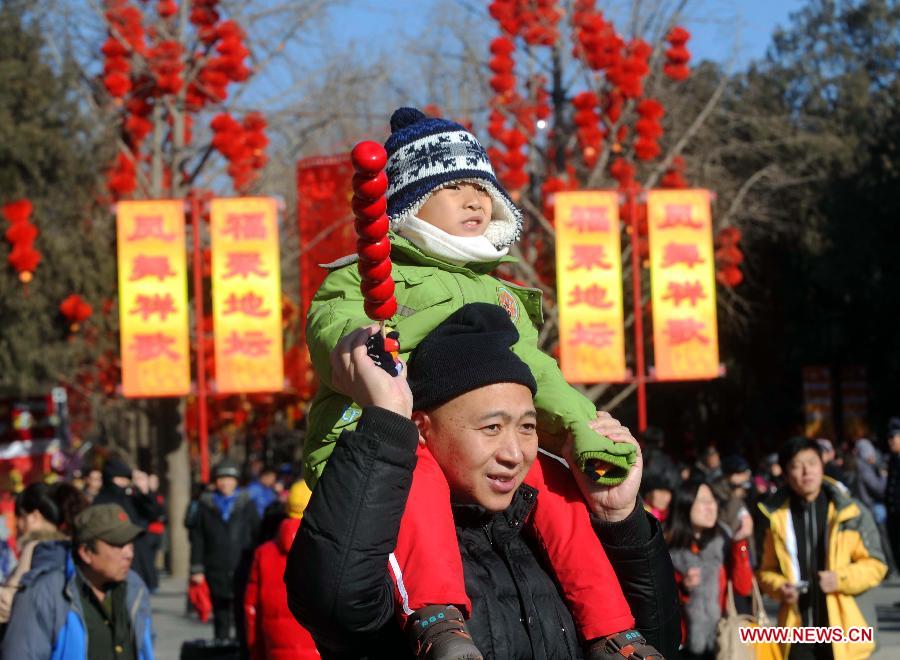 People visit the temple fair in Ditan Park in Beijing, capital of China, Jan. 30, 2014. The 29th Ditan Park temple fair open to the public on Thursday. [Photo/Xinhua]