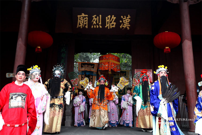 Actors performing a Three Kingdom themed opera at the Wuhou Temple Fair in Chengdu , Sichuan province, on January 31.[Photo/chinaculture.org]
