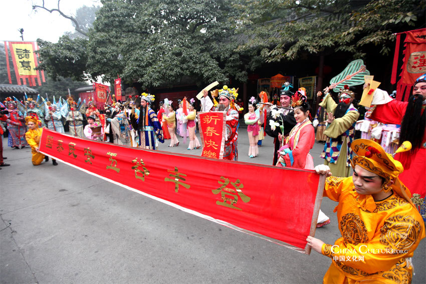 Actors performing a Three Kingdom themed opera at the Wuhou Temple Fair in Chengdu , Sichuan province, on January 31.[Photo/chinaculture.org]