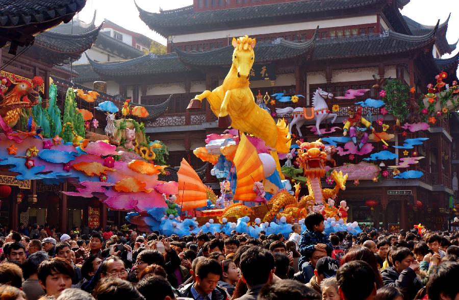 People visit a lantern show in celebration of Chinese lunar new year in Shanghai, east China, Jan. 31, 2014. [Xinhua/Cai Yaofang]