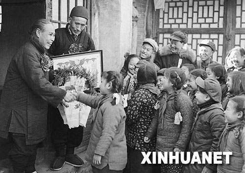 Beijing elementary school students visit military families during Spring Festival in 1955. [Xinhua Photo]