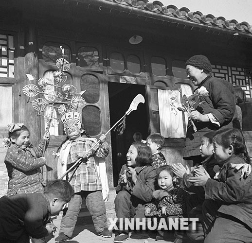 Children play games at Spring Festival holiday in 1956. [Xinhua Photo]