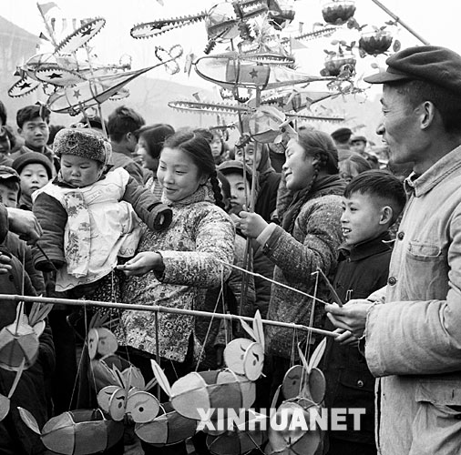Nanjing citizens buy festive lantern at Confucius Temple, 1961. [Xinhua Photo]