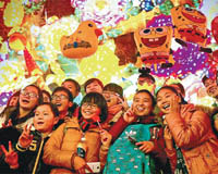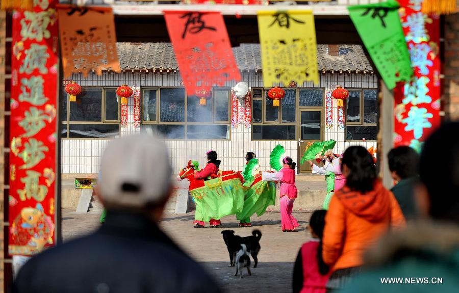 Actors perform Yangko dance in Horinger County, Hohhot City, north China's Inner Mongolia Autonomous Region, Feb. 11, 2014, during the Spring Festival celebrations.(Xinhua/Ren Junchuan)