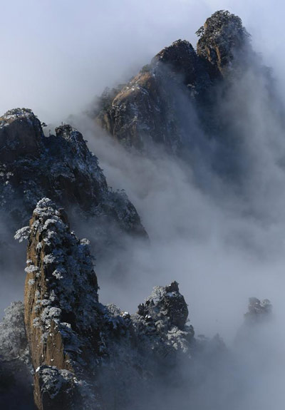 Photo taken on Feb. 16, 2014 shows the scenery of Huangshan Mountain after a snowfall in east China's Anhui Province. (Xinhua)
