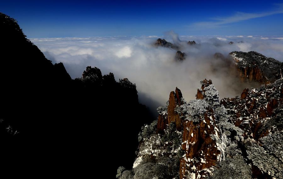 Photo taken on Feb. 16, 2014 shows the scenery of Huangshan Mountain after a snowfall in east China's Anhui Province. (Xinhua)