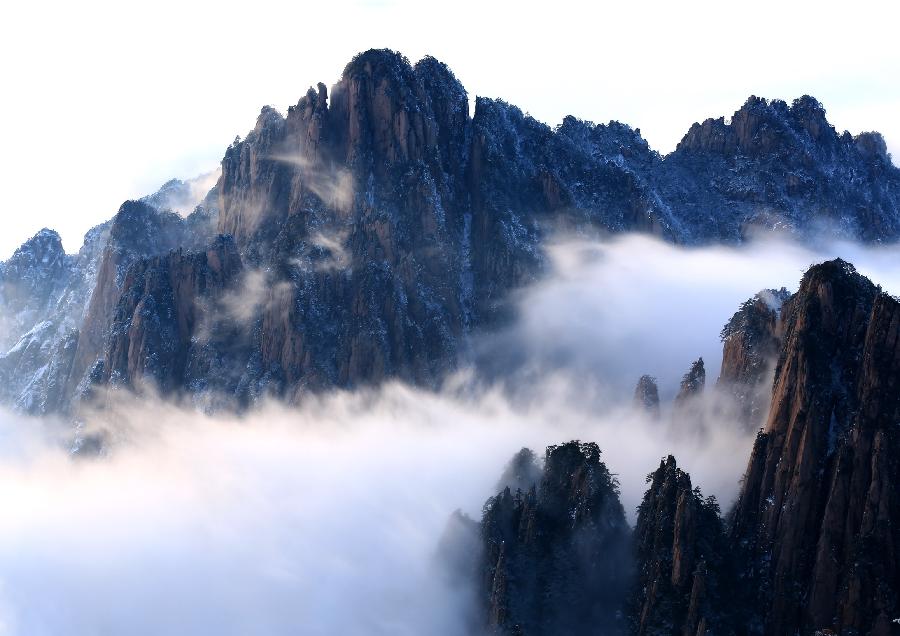 Photo taken on Feb. 16, 2014 shows the scenery of Huangshan Mountain after a snowfall in east China's Anhui Province. (Xinhua)