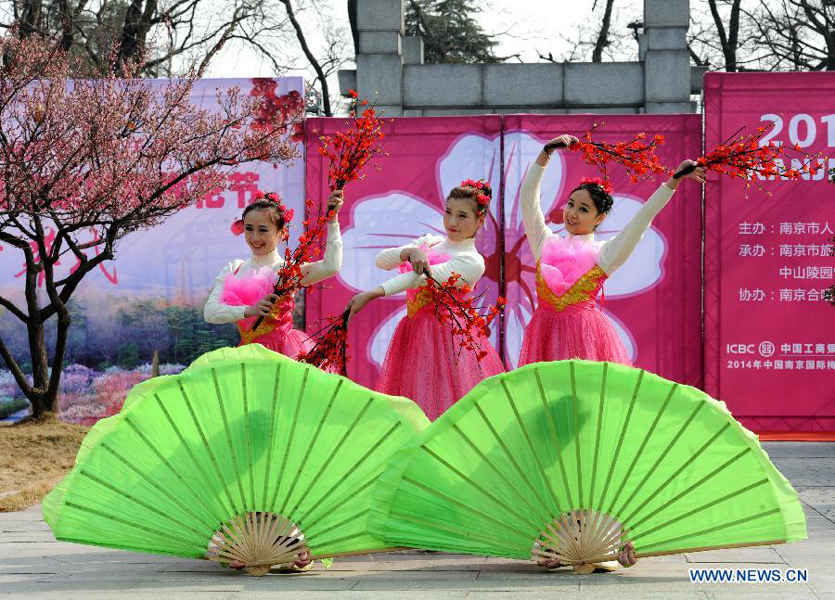 Actresses perform during the 2014 Nanjing International Plum Blossom Festival in Nanjing, capital of east China's Jiangsu Province, Feb. 20, 2014. The 40-day festival opened here on Thursday. (Xinhua/Sun Can)