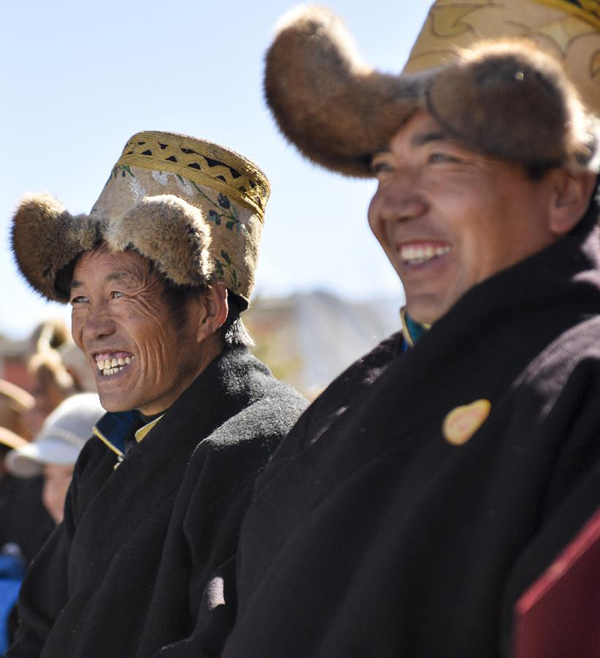 Photo taken on Feb. 20, 2014 shows local villagers watching performances in Lhasa, capital of southwest China's Tibet Autonomous Region. Local art troupes organized performances for villagers in Lhasa to embrace the upcoming Tibetan New Year. (Xinhua/Purbu Zhaxi)