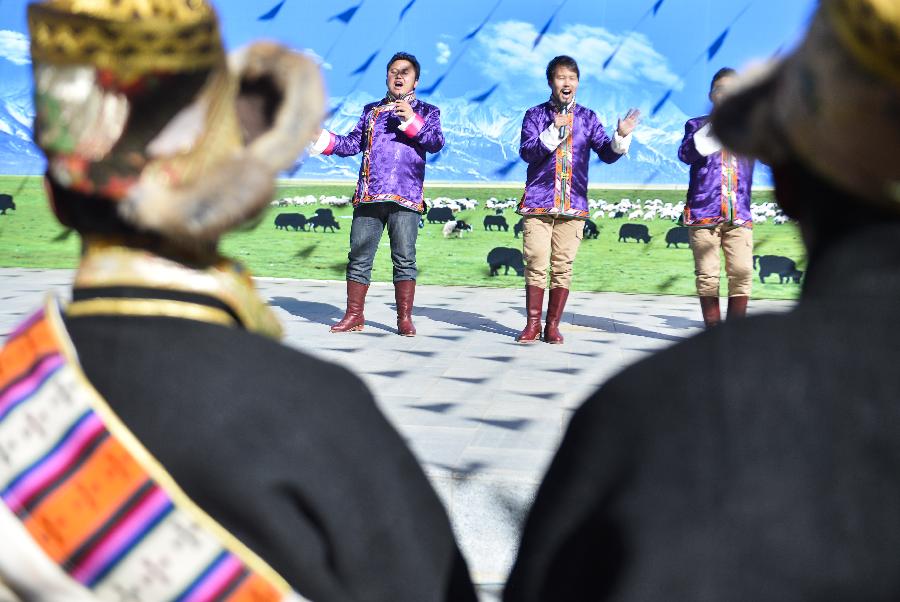 Three actors give performances for local villagers in Lhasa, capital of southwest China's Tibet Autonomous Region. Local art troupes organized performances for villagers in Lhasa to embrace the upcoming Tibetan New Year. (Xinhua/Purbu Zhaxi)