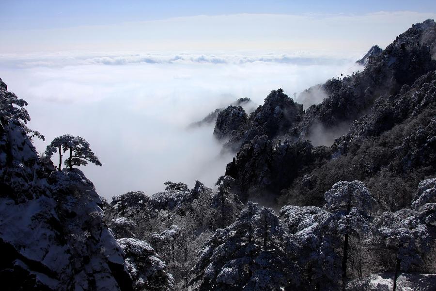 Photo taken on Feb. 19, 2014 shows the scenery of Huangshan Mountain after a snowfall in east China's Anhui province. [Xinhua/Shi Guangde]