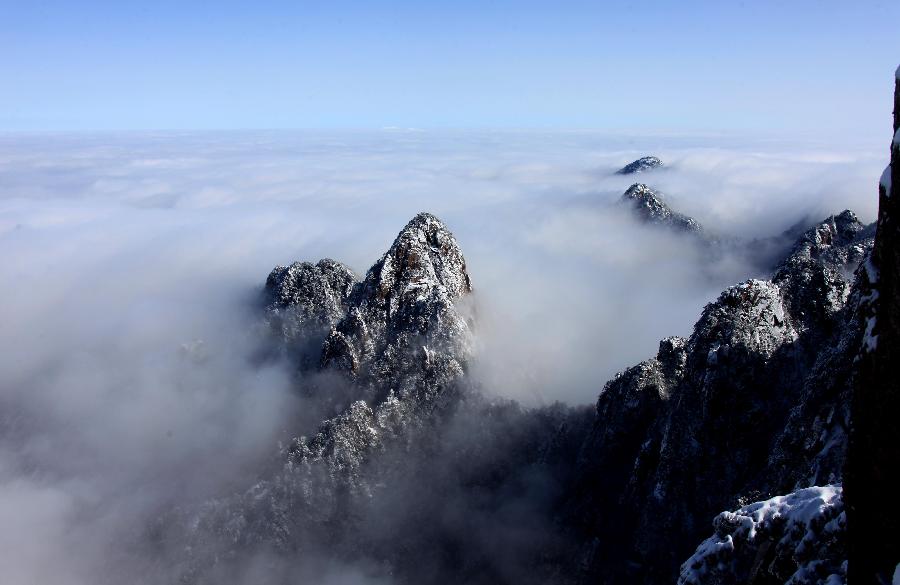 Photo taken on Feb. 19, 2014 shows the scenery of Huangshan Mountain after a snowfall in east China's Anhui province. [Xinhua/Shi Guangde]