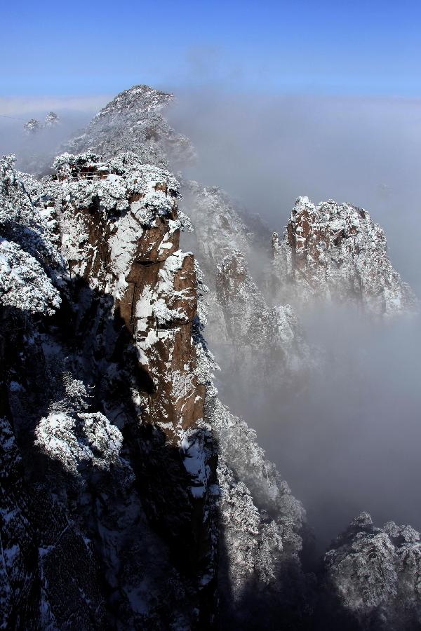 Photo taken on Feb. 19, 2014 shows the scenery of Huangshan Mountain after a snowfall in east China's Anhui province. [Xinhua/Shi Guangde]