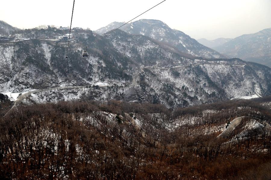 Photo taken on Feb. 19, 2014 shows the scenery of snow-covered Taishan Mountain in Tai'an, east China's Shandong province. Some areas of Taishan Mountain were covered by thick snow because of the continuous snowfall since mid February of 2014. [Xinhua/Xu Suhui]