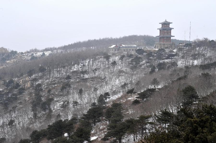 Photo taken on Feb. 19, 2014 shows the scenery of snow-covered Taishan Mountain in Tai'an, east China's Shandong province. Some areas of Taishan Mountain were covered by thick snow because of the continuous snowfall since mid February of 2014. [Xinhua/Xu Suhui]