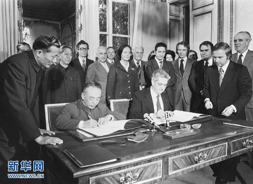 Chinese and French governments sign a cooperation agreement between the French National Scientific Research Center and Chinese Academy of Sciences in Paris on Oct. 20, 1978. (Photo/Xinhua)