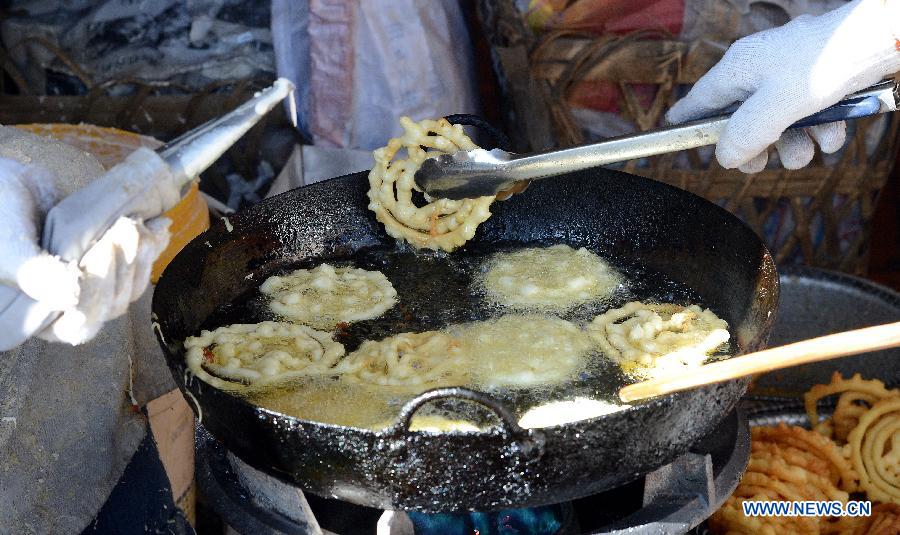 Women of the Tibetan ethnic group make "Kasai," a traditional Tibetan food, to receive the coming Tibetan New Year, or "Losar", in Lhasa, capital of southwest China's Tibet Autonomous Region, Feb. 24, 2014. People of the Tibetan ethnic group will embrace the "Wood Horse Losar" on March 2. (Xinhua/Chogo)