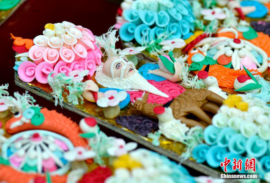 Beautiful butter sculptures in the market in Lhasa, capital of Tibetan Autonomous Region on Feb. 24, 2014. (Photo/CNS)