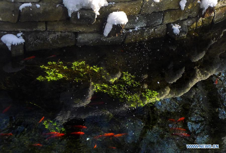 Fishes swim in water at Shuimogou Park in Urumqi, capital of northwest China's Xinjiang Uygur autonomous region, Feb. 25, 2014. The air became very fresh after a heavy snowfall in Urumqi on Tuesday. (Xinhua/Wang Fei)