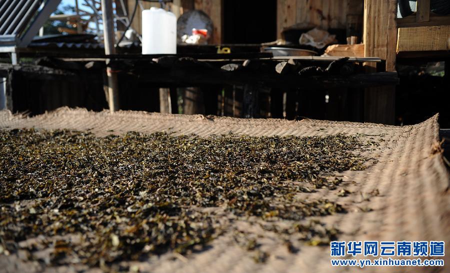 On January 10, tea leaves are dried in the ancient villages on the Jingmai Mountain. (Xinhua/Qin Lang)