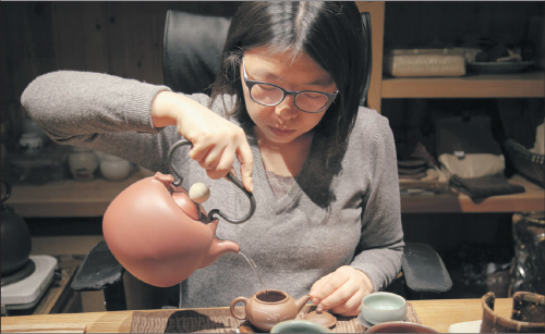 Yu Ning brews her favorite tea at home. The tea lover spends her holidays traveling from Beijing to the countryside in Fujian province to help a tea-growing family pluck and process tea and sell their handmade products in Beijing.[FAN ZHEN/CHINA DAILY]