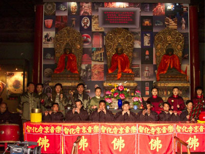 Zhihua Temple was built in 1443 as the ancestral shrine of the Ming eunuch Wang Zhen, head of the Directorate of Ceremonial for the imperial court and right-hand man of the emperor. Utilizing his position, Wang introduced imperial music, then exclusive to Ming palaces, into his temple, where the monastery ensemble incorporated it with Buddhist music and created a new genre. As the Wang family declined in later years, funding for the temple ebbed away, forcing its ensemble to stage commercial performances to survive. In the course of this, the music took on elements of the folk music of northern China, and gradually evolved into a style of its own. By the mid-19th century, the temple’s repertory had become mainstream Buddhist music in northern China, and hence referred to as Jing (Beijing) Music.