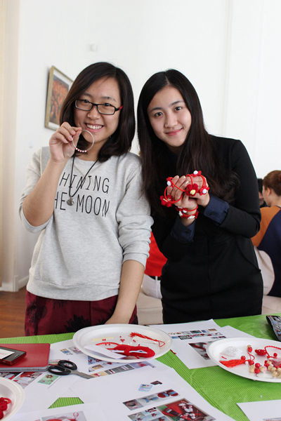 Bulgarian major students from Beijing Foreign Studies University show their Martenitsa.(People’s Daily Online/ Xing Lu)