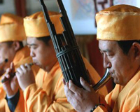 Built in 1679, at the order of the fifth Dalai Lama following an augury, it is the largest Tibetan Buddhist shrine in Yunnan province. Rising along a hillside, this majestic complex, with its towering roofs of gilded brass tiles gleaming in the sun, along with vermilion walls, white windows and black curtains standing out against a clear blue sky, evokes a heavenly aura. This design wins it the renown of “minor Potala Palace.”