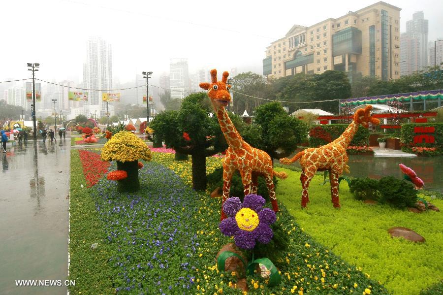 Photo taken on March 6, 2014 shows the site of 2014 Hong Kong Flower Show in south China's Hong Kong. The Leisure and Cultural Services Department of Hong Kong held a press conference Thursday, announcing that the 2014 flower show will be held from March 7 to March 16 at Victoria Park in Causeway Bay. (Xinhua/Lui Siu Wai)