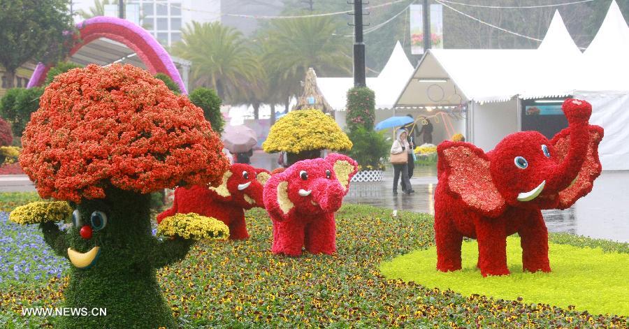 Photo taken on March 6, 2014 shows the site of 2014 Hong Kong Flower Show in south China's Hong Kong. The Leisure and Cultural Services Department of Hong Kong held a press conference Thursday, announcing that the 2014 flower show will be held from March 7 to March 16 at Victoria Park in Causeway Bay. (Xinhua/Lui Siu Wai)