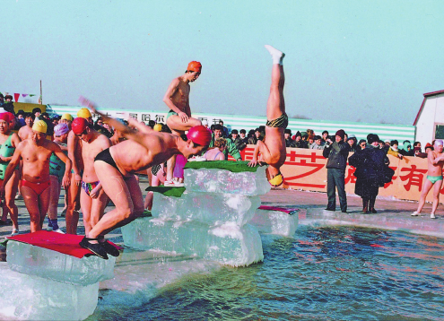 Tourists joined a winter swimming competition during the festival.[ZHANG DAFANG/CHINA DAILY]