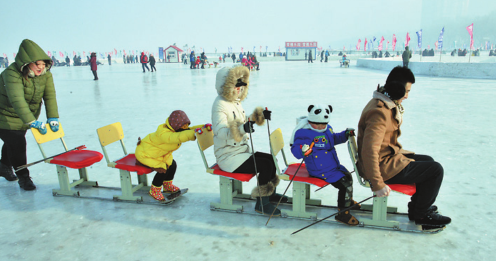 Family enjoys a day at Ice Happy Valley. [ZHANG DAFANG/CHINA DAILY]