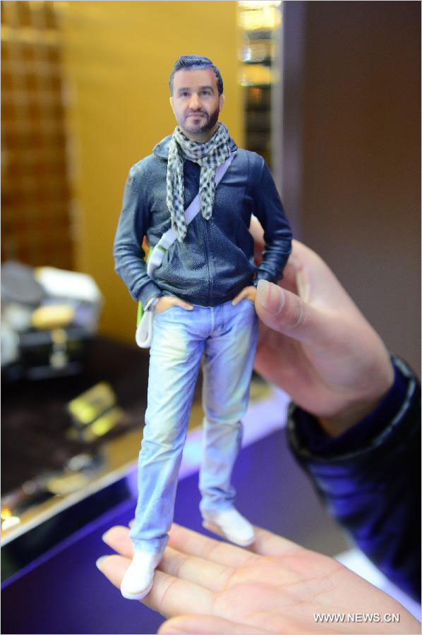 A finished wax figure is displayed at a 3D-print wax work studio in Nanjing, east China's Jiangsu Province, March 6, 2014. Consumers could pay for wax figures of themselves in various sizes made by the 3D printer in the studio, which will spend two weeks in making after a full-body scan for 3-5 minutes. [Photo: Xinhua/Shen Peng]
