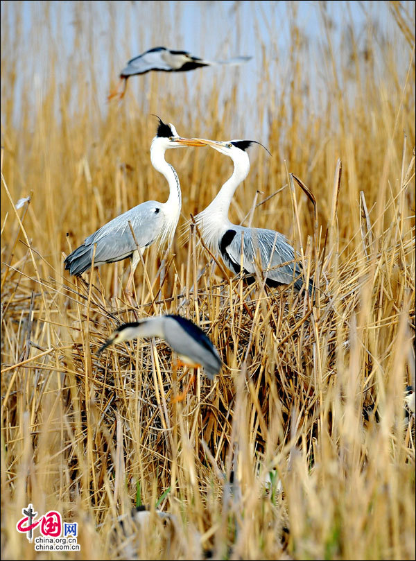 Sand Lake, 56 kilometers north of Yinchuan, the capital city of Ningxia Hui Autonomous Region, offers a rare view of a combination of desert and lake. Home to hundreds of species of birds, it is also an ideal place for bird watching. [China.org.cn]