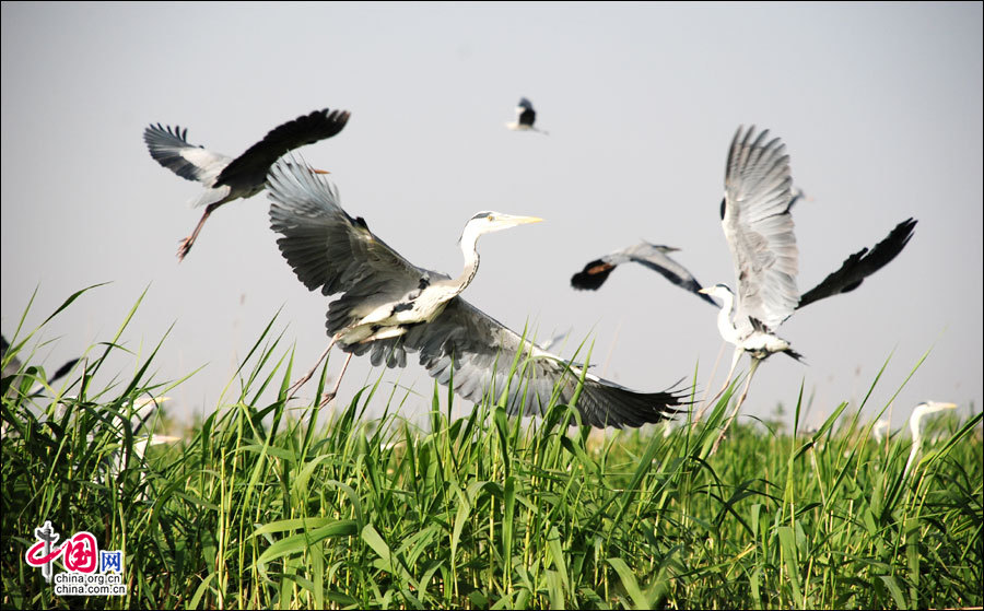 Sand Lake, 56 kilometers north of Yinchuan, the capital city of Ningxia Hui Autonomous Region, offers a rare view of a combination of desert and lake. Home to hundreds of species of birds, it is also an ideal place for bird watching. [China.org.cn]