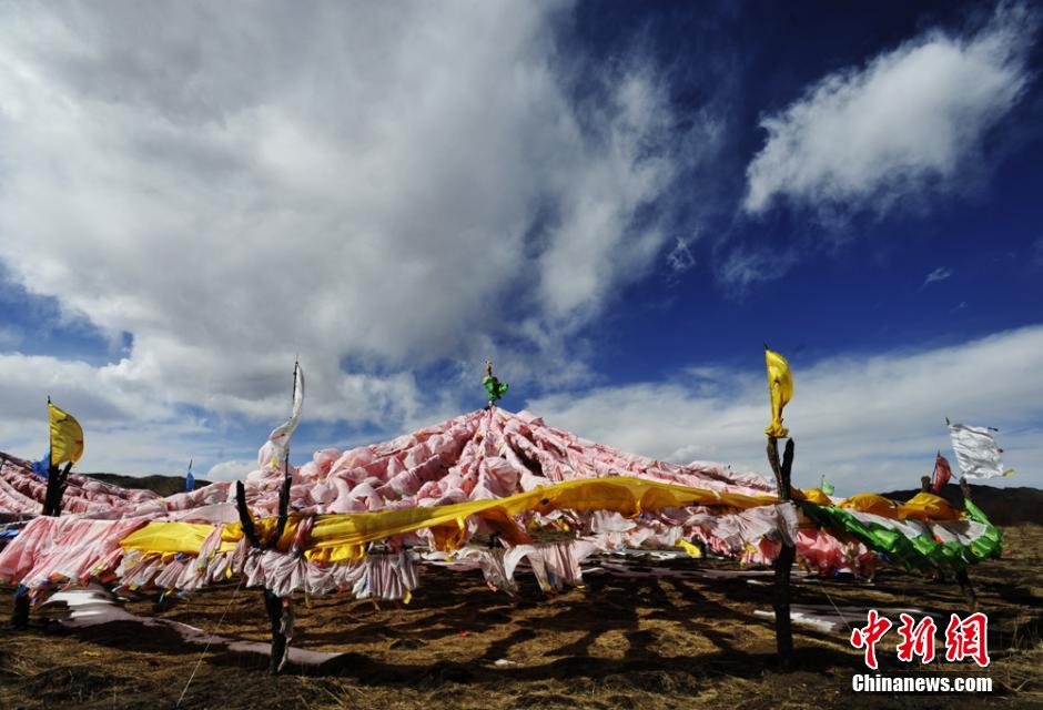 Colorful prayer flags can be found everywhere in Hongyuan County in Aba Tibetan and Qiang Autonomous Prefecture, Sichuan Province. Prayer flags are important to Tibetan Buddhists. They are squares of colorful cotton fabric inscribed with mantras, prayers and symbols that represent Tibetan Buddhist philosophy. The tradition of hanging prayer flags dates back thousands of years. When the flags are hung outside, wind passes through them and carries the prayers throughout the world.(CNS Photo)