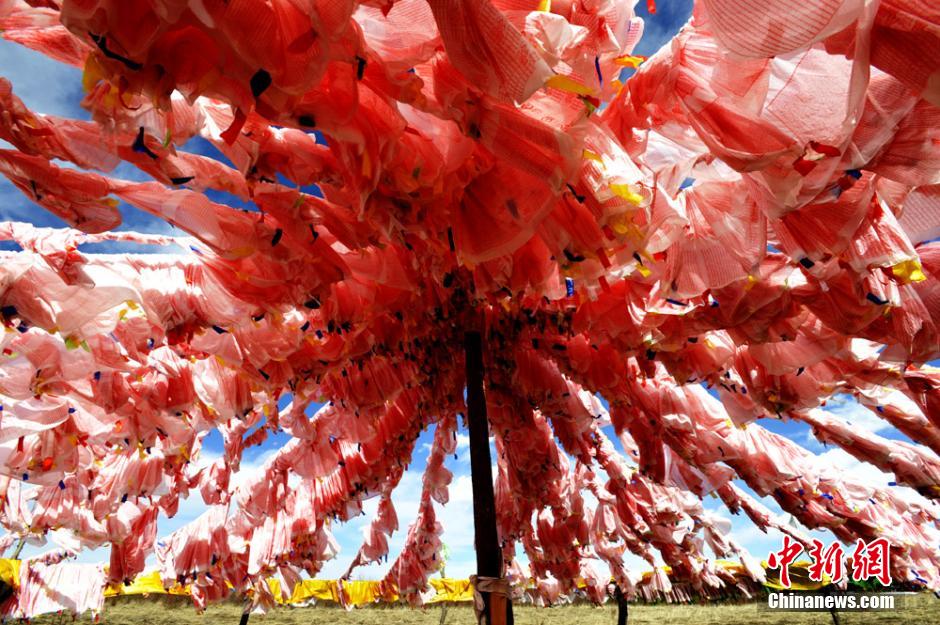 Colorful prayer flags can be found everywhere in Hongyuan County in Aba Tibetan and Qiang Autonomous Prefecture, Sichuan Province. Prayer flags are important to Tibetan Buddhists. They are squares of colorful cotton fabric inscribed with mantras, prayers and symbols that represent Tibetan Buddhist philosophy. The tradition of hanging prayer flags dates back thousands of years. When the flags are hung outside, wind passes through them and carries the prayers throughout the world.(CNS Photo)