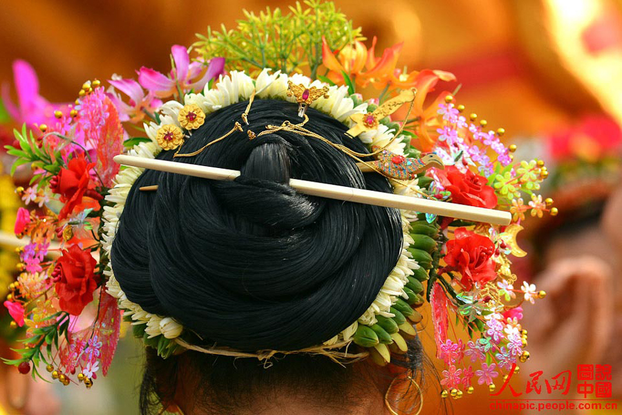 Fisherwomen from Xunpu in southeast China's Fujian province are well-known for their diligence and honest characters, and their special headwear and stylish costumes are very famous. Xunpu fisherwomen keep raising their hair when they were little girls, and after reach adulthood, they tie up long hair as updos with different shining topknots and fresh flowers. (Photo/Chinapic)