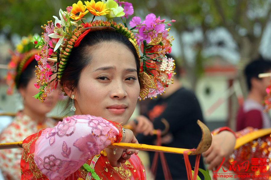 Fisherwomen from Xunpu in southeast China's Fujian province are well-known for their diligence and honest characters, and their special headwear and stylish costumes are very famous. Xunpu fisherwomen keep raising their hair when they were little girls, and after reach adulthood, they tie up long hair as updos with different shining topknots and fresh flowers. (Photo/Chinapic)
