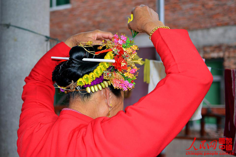 Fisherwomen from Xunpu in southeast China's Fujian province are well-known for their diligence and honest characters, and their special headwear and stylish costumes are very famous. Xunpu fisherwomen keep raising their hair when they were little girls, and after reach adulthood, they tie up long hair as updos with different shining topknots and fresh flowers. (Photo/Chinapic)