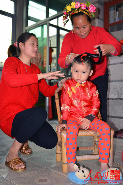 Fisherwomen from Xunpu in southeast China's Fujian province are well-known for their diligence and honest characters, and their special headwear and stylish costumes are very famous. Xunpu fisherwomen keep raising their hair when they were little girls, and after reach adulthood, they tie up long hair as updos with different shining topknots and fresh flowers. (Photo/Chinapic)