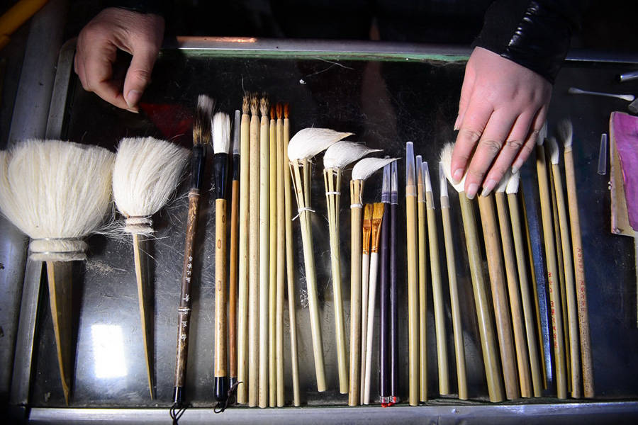 Brushes for pottery made in Sheng’s store. (Xinhua/Zhou Mi) |