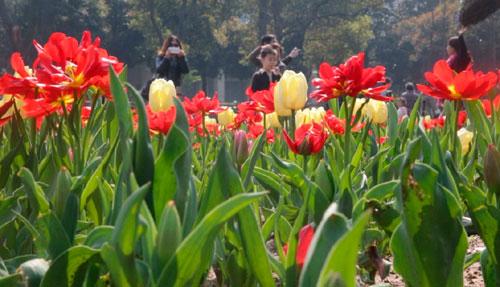 The botanical garden have grown tulips for more than 10 years, with the current number of Holland's national flower exceeding 600,000 in over 100 species. A local gardening expert says that they have carefully arranged the tulips in a harmonious way.