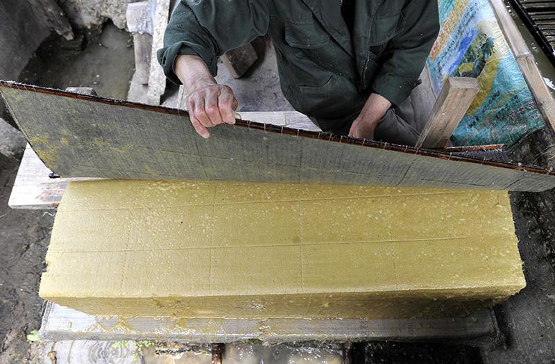 Papermaking worker Xie Yaohui shows centuries-old handmade paper skill in Laopeng village of Zhangjiajie, central China’s Hunan province on March 21, 2014. (Xinhua/ Shao Ying)