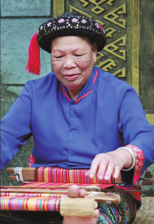 In one of the scenic areas in Hainan, a Li ethnic woman showing her traditional embroidery skills.[HUANG YIMING/CHINA DAILY] |