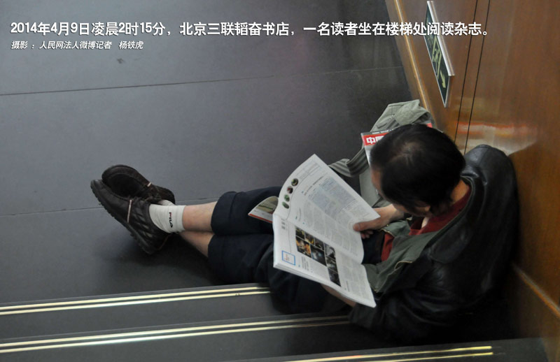 The Sanlian Taofen bookstore has begun a test run of 24*7 opening hour. The late night bookstore experience was started on April 8, 2014. The bookstore will arrange tables and heated cushions for readers at night and provide detailed and thoughtful service for them.